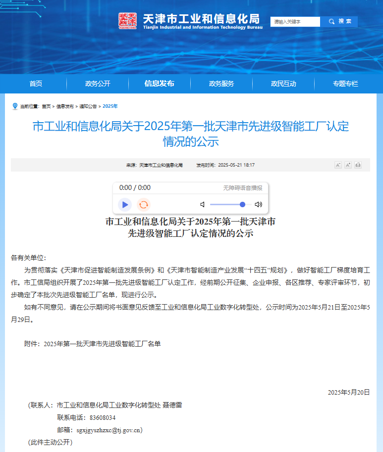 近日,天津市工业和信息化局正式公布2025年第一批天津市先进级智能工厂名单,集团两家子公司,天津市金桥蓝颜gtv